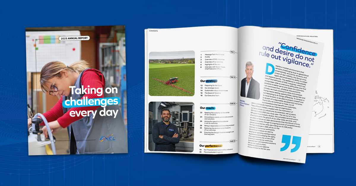 Discover EXEL Industries’ Activity Report for the 2024–2025 financial year, structured around the Group’s six strategic pillars: Customer, Innovation, Operational Excellence, People, Planet, Profit. Key highlights of 2025: industrial modernization, major innovation projects, and tangible CSR commitments. A clear overview of our financial and non-financial performance, serving sustainable value creation.