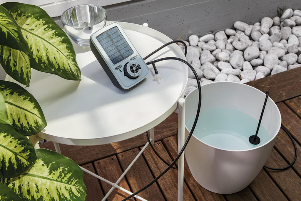 Développé par G.F., l’AQUATIME Solar UNO.3 Kit 20 est un système d’irrigation goutte‑à‑goutte autonome fonctionnant à l’énergie solaire. Équipé d’un programmateur et d’une pompe intégrée, il puise l’eau dans une réserve ou un récupérateur d’eau de pluie pour irriguer jusqu’à 20 plantations, sans raccordement électrique ni au réseau d’eau. Une solution simple et responsable pour délivrer la bonne dose d’eau, au bon endroit et au bon moment.